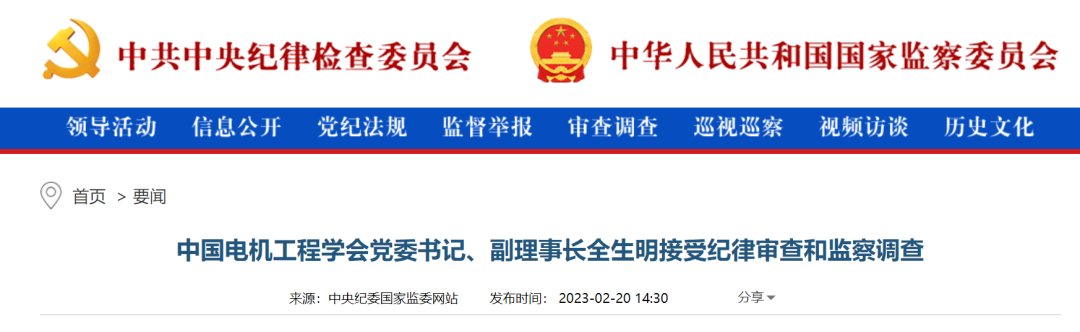 中央紀委國家監(jiān)委網站2月20日消息,據中央紀委國家監(jiān)委駐國家電網有限公司紀檢監(jiān)察組、安徽省紀委監(jiān)委消息:中國電機工程學會黨委書記、副理事長全生明涉嫌嚴重違紀違法,目前正接受中央紀委國家監(jiān)委駐國家電網有限公司紀檢監(jiān)察組和安徽省馬鞍山市監(jiān)察委員會聯(lián)合審查調查。