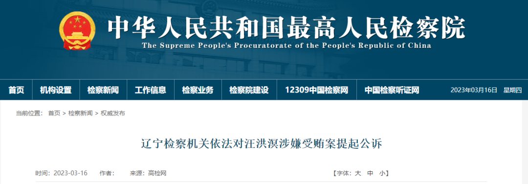遼寧省發(fā)展和改革委員會(huì)原黨組成員、副主任兼遼寧省能源局原局長汪洪溟(副廳級(jí))涉嫌受賄罪一案,由遼寧省監(jiān)察委員會(huì)調(diào)查終結(jié),經(jīng)遼寧省人民檢察院指定管轄,由沈陽市遼中區(qū)人民檢察院審查起訴。日前,遼中區(qū)人民檢察院依法向遼中區(qū)人民法院提起公訴。