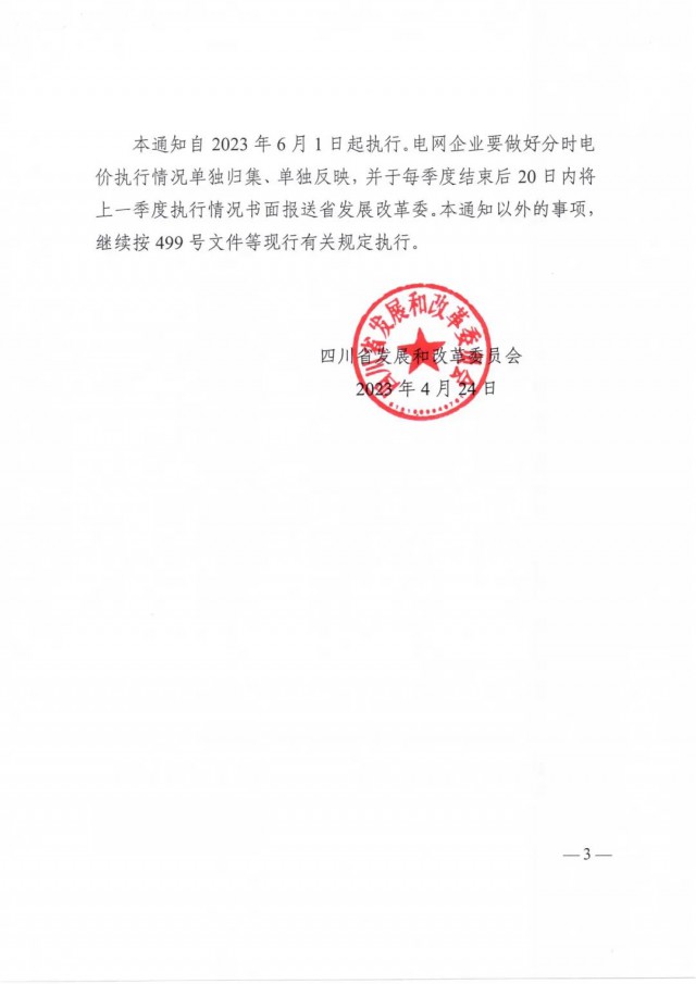 4月24日,四川省發(fā)展和改革委員會發(fā)布《關(guān)于調(diào)整我省分時電價機(jī)制的通知》,對峰平谷時段、大型商業(yè)用戶電價機(jī)制調(diào)整進(jìn)行了說明,將在6月1日起執(zhí)行,詳情如下: