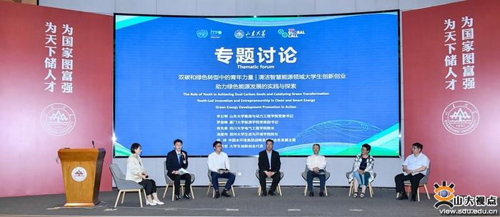 啟動儀式后,聯(lián)盟成員高校代表、Global Call往屆獲獎企業(yè)代表、大學(xué)生創(chuàng)新創(chuàng)業(yè)代表圍繞“雙碳和綠色轉(zhuǎn)型中的青年力量,清潔智慧能源領(lǐng)域大學(xué)生創(chuàng)新創(chuàng)業(yè),助力綠色能源發(fā)展的實踐與探索”主題進行了專題討論。山東大學(xué)國際事務(wù)部、學(xué)生就業(yè)創(chuàng)業(yè)指導(dǎo)中心等部門負(fù)責(zé)人參加相關(guān)活動。