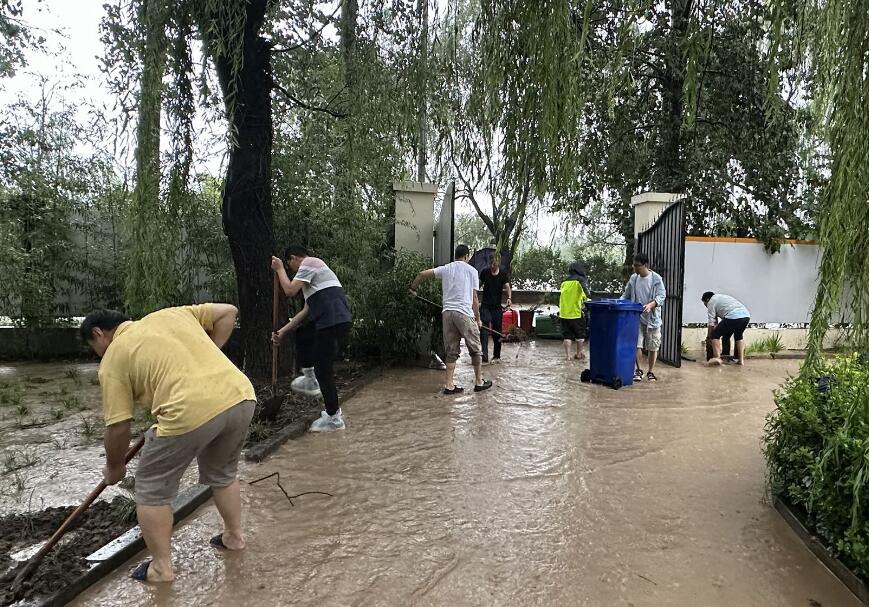 華潤置地北京悅府一期項目部組織近百人的應(yīng)急搶險突擊隊,并安排2臺挖掘機等大型機械24小時應(yīng)急值守,同步儲備相應(yīng)救生衣、雨衣、雨鞋、鐵鍬、照明燈和防汛沙袋等防汛物資,確保在第一時間處置汛情。