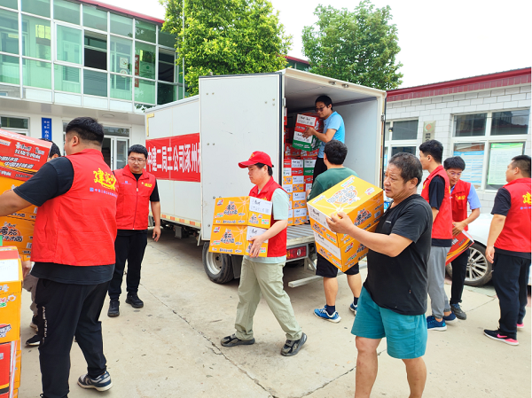 在河北涿州,中建二局“砼心筑夢”志愿服務(wù)隊(duì)為涿州范陽醫(yī)院送去救生衣、礦泉水、面包、牛奶、八寶粥等救援物資。中建二局涿州松林店項(xiàng)目主動(dòng)對接涿州市總工會(huì),積極籌備救災(zāi)物資,項(xiàng)目黨員、青年員工奔赴大馬村和東莊頭村配送礦泉水、方便面等生活物資。
