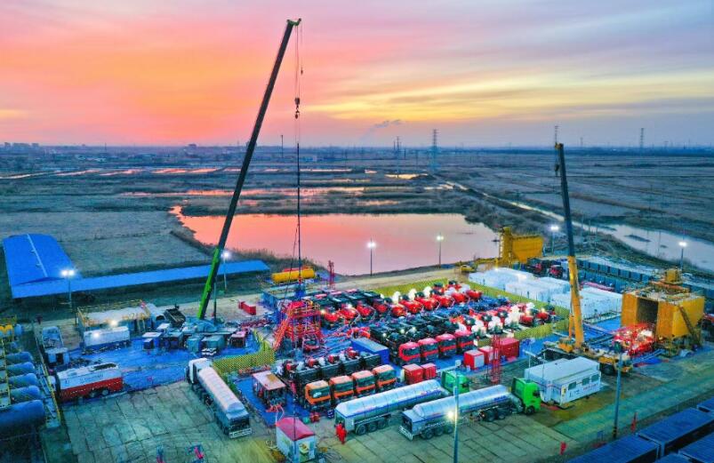 勝利油田牛頁1-6井壓裂現(xiàn)場。