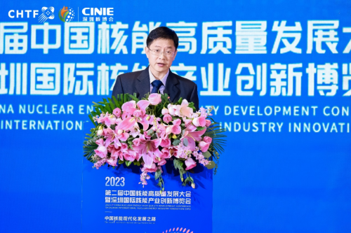 深圳市政府副市長張華在致辭中指出:深圳市高度重視核能高質(zhì)量發(fā)展工作,出臺了《關(guān)于發(fā)展壯大戰(zhàn)略性新興產(chǎn)業(yè)集群和培育發(fā)展未來產(chǎn)業(yè)的意見》,《深圳市“碳達(dá)峰”實施方案》等政策文件,著力打造人與自然和諧共生的美麗中國典范。同時深圳本土涌現(xiàn)出中廣核等一批行業(yè)領(lǐng)軍企業(yè),前瞻系統(tǒng)布局第四代核電技術(shù),多項核相關(guān)技術(shù)走在全國前列,大亞灣核電基地安全穩(wěn)定運行。未來深圳將充分發(fā)揮產(chǎn)業(yè)創(chuàng)新市場等優(yōu)勢,繼續(xù)支持核能產(chǎn)業(yè)高質(zhì)量發(fā)展。