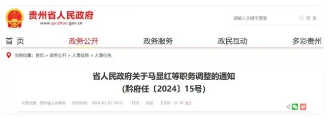 省人民政府關(guān)于馬顯紅等職務(wù)調(diào)整的通知