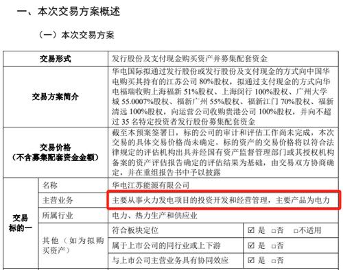 首先,華電國際擬通過發(fā)行股份或發(fā)行股份及支付現(xiàn)金的方式,向中國華電購買其持有的華電江蘇能源有限公司(以下簡稱江蘇公司)80%股權(quán)。