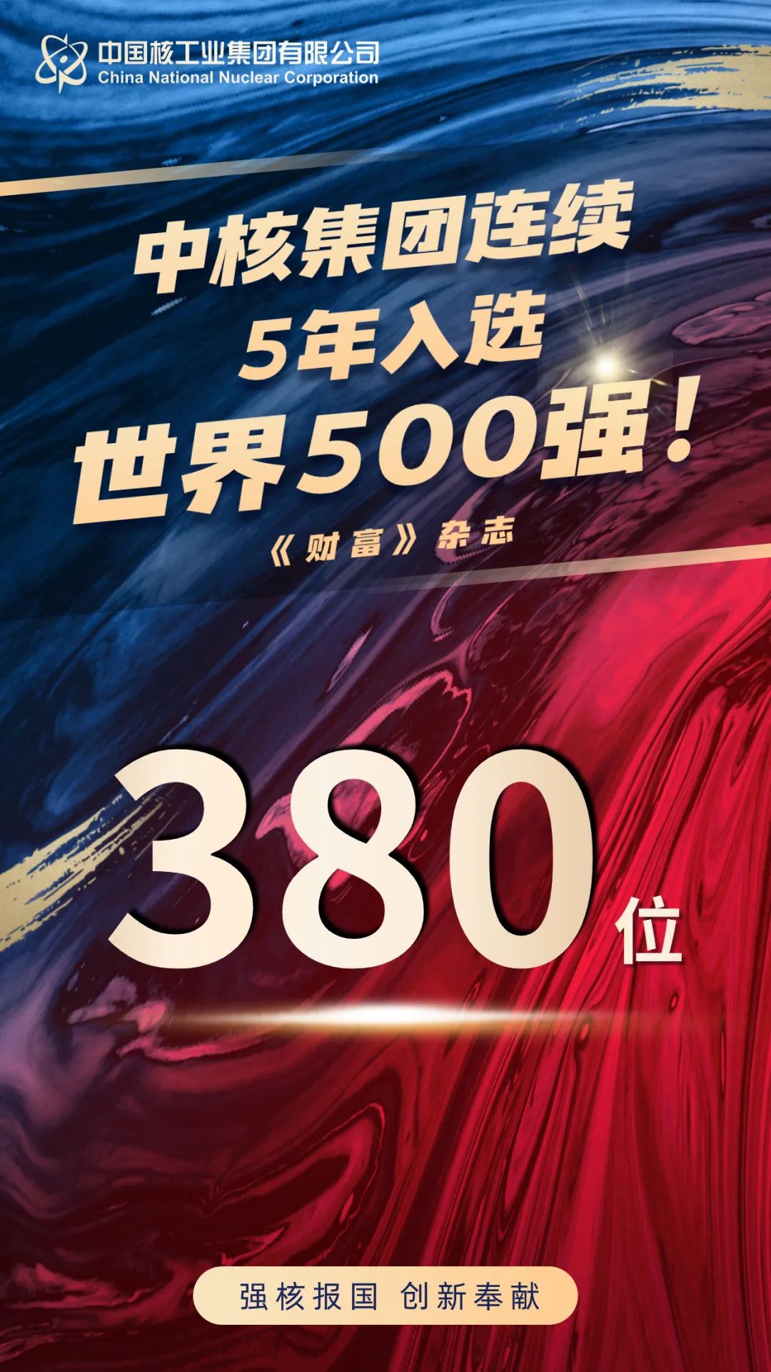 北京時間8月5日,《財富》雜志最新一期世界500強排名揭曉,中核集團再度榮登榜單,連續(xù)五年穩(wěn)居其中,位列第380位!