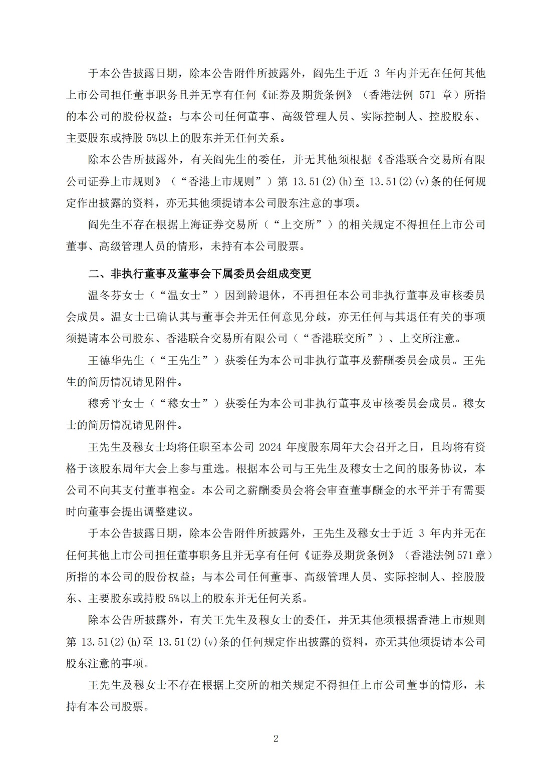 二、非執(zhí)行董事及董事會下屬委員會組成變更
