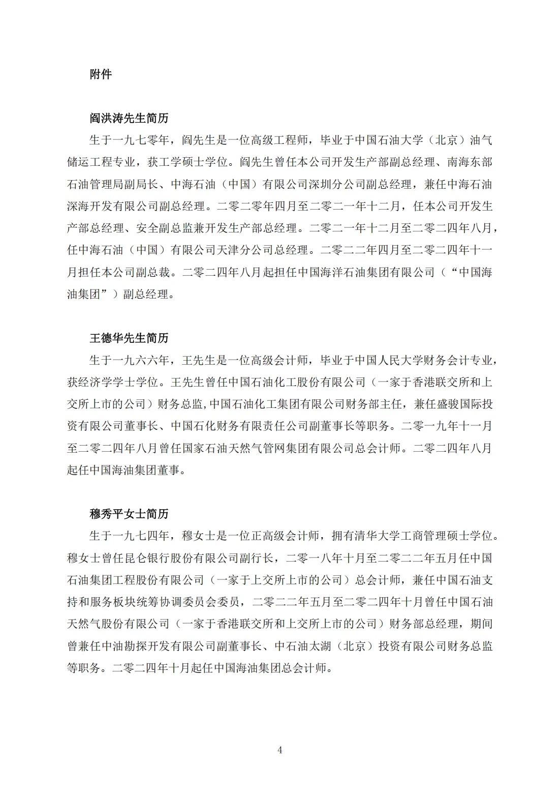王德華獲委任為中國海洋石油有限公司非執(zhí)行董事及薪酬委員會成員。