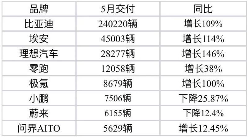 6月1日,新能源車企陸續(xù)交出5月銷售成績(jī)單。