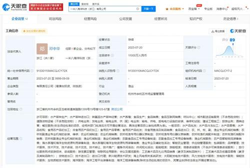 天眼查App顯示,一米八海洋科技(浙江)有限公司的法定代表人為鄧中華,注冊資本1.1億人民幣,經(jīng)營范圍包括水產(chǎn)養(yǎng)殖、食品銷售、水產(chǎn)品冷凍加工、輸電供電、海上風(fēng)電相關(guān)系統(tǒng)研發(fā)、儲能技術(shù)服務(wù)等。