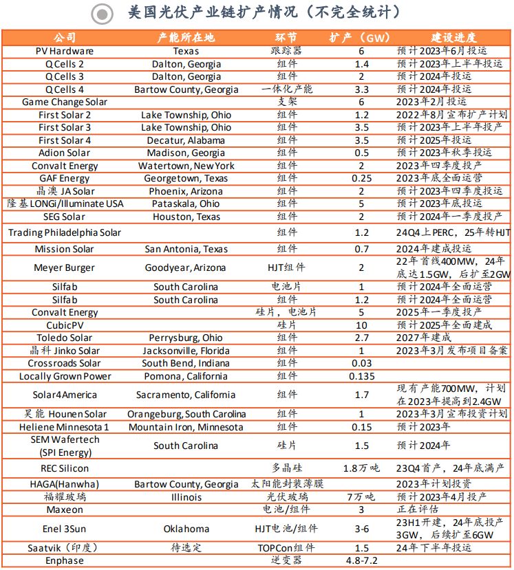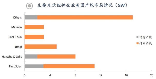 來源:InfoLink,Solar Power World,SEIA,Wood Mackenzie,平安證券(上述項(xiàng)目暫未計入阿特斯7月剛宣布的5GW美國工廠計劃)