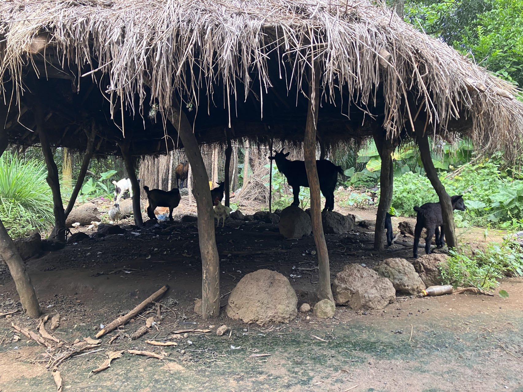 過去,由于半年雨季、半年旱季的氣候,當?shù)刂荒芊N植一些耐澇耐旱的花生和旱豆等農作物。而由于缺少農業(yè)生產(chǎn)機械、化肥農藥和蔬菜種植、禾苗培育經(jīng)驗,當?shù)卮迕裾晷燎趧谧?,卻依然家徒四壁。此前,村民住在簡陋的茅草屋里,原生態(tài)粗木頭豎起來圍成一個圓圈作為“承重墻”,上面搭建茅草編織的錐形屋頂,泥巴地上鋪幾床草席,便是一個普通人家的全部。