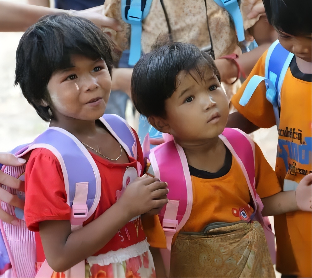 此行還給老人和孩子帶去了生活基本物資(大米、油、毛巾、麥片), 并專門為孩子們準備了書包、書本、筆等文具用品,同時給予了資金捐助。當志愿者將捐助的物資送到每位老人與孩子手里時,老人們眼中含著感動的淚水。雖然語言溝通有障礙,但他們眼神里透露出的感激,超越了膚色、文化、國別界限。