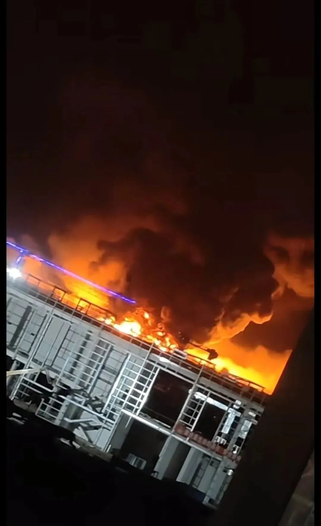 據(jù)多個(gè)視頻顯示,火災(zāi)發(fā)生后,相關(guān)方調(diào)派了多地大批消防車到場滅火,持續(xù)到晚上12時(shí),火災(zāi)仍未撲滅。有消息稱是Pt板著火。