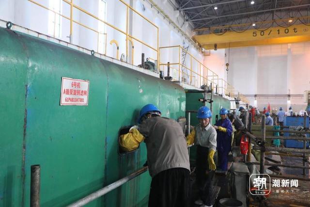 夜晚,反而留下的技術(shù)人員更多了,他們要在崗位上駐守,以防隨著潮汐變化,海蜇再一次出現(xiàn)井噴量,導致機器過載發(fā)生故障,他們要及時修理保障常規(guī)發(fā)電量。