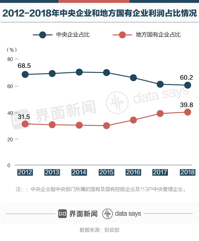 央企利潤占比減少,地方國企增加