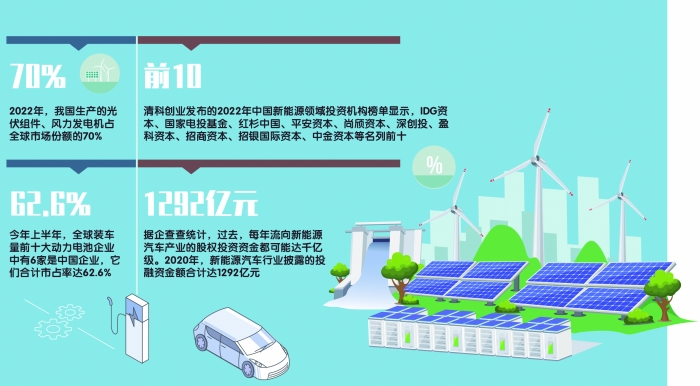 以上并非謬贊。據(jù)國(guó)家能源局及咨詢機(jī)構(gòu)SNE Research統(tǒng)計(jì)數(shù)據(jù)來(lái)看,我國(guó)生產(chǎn)的光伏組件、風(fēng)力發(fā)電機(jī)占全球市場(chǎng)份額的70%,新能源汽車(chē)動(dòng)力電池裝車(chē)量占世界的60%。在新能源領(lǐng)域,我國(guó)擔(dān)當(dāng)?shù)闷?ldquo;領(lǐng)先”之稱。