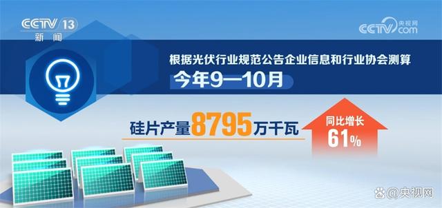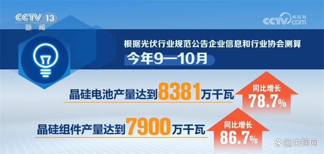 根據(jù)光伏行業(yè)規(guī)范公告企業(yè)信息和行業(yè)協(xié)會測算,今年9—10月,全國多晶硅產(chǎn)量達(dá)到23.66萬噸,同比增長90%;硅片產(chǎn)量8795萬千瓦,同比增長61%;晶硅電池、晶硅組件產(chǎn)量分別達(dá)到8381萬千瓦、7900萬千瓦,同比分別增長78.7%、86.7%。