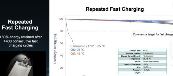 與此同時(shí),測試數(shù)據(jù)還顯示,配備 QuantumScape電池的電動(dòng)汽車,WLTP 續(xù)航里程為 500-600公里(311—373 英里),在電池的全生命周期內(nèi),可以行駛超過50萬公里(約311,000 英里),不會(huì)有任何續(xù)航能力衰退。