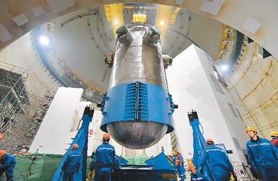 1月28日,華龍一號(hào)全球首堆、中核集團(tuán)福清核電5號(hào)機(jī)組反應(yīng)堆壓力容器順利吊裝。林善傳攝(新華社發(fā))