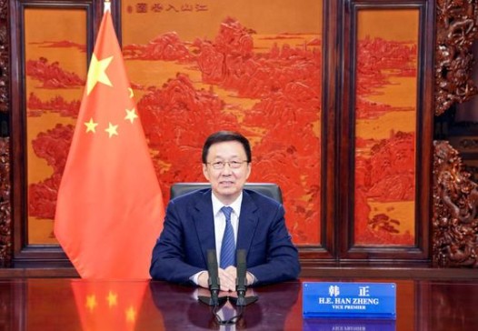 10月18日,中共中央政治局常委、國務院副總理韓正在北京以視頻方式出席第二屆“一帶一路”能源部長會議并發(fā)表致辭。新華社記者 殷博古 攝