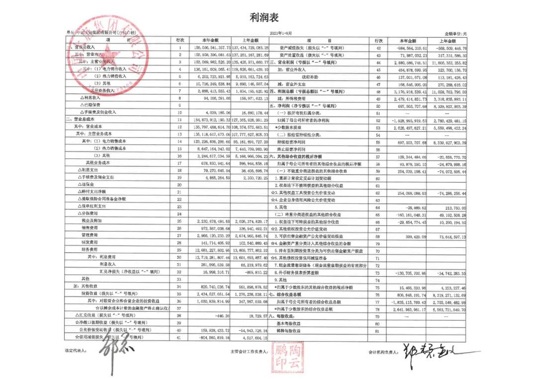 前三季度,華能集團實現(xiàn)營業(yè)總收入2713.9億元,上年同期2212.3億元,同比增長約22.7%;
