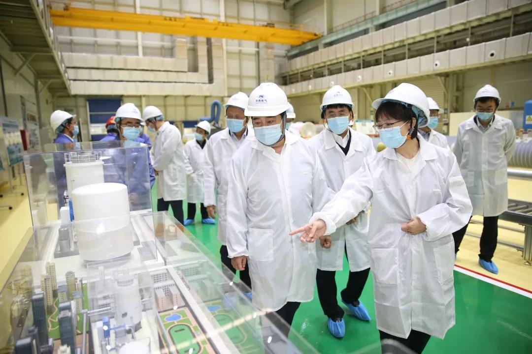 2021年10月26日,集團(tuán)公司黨委書(shū)記、董事長(zhǎng)白忠泉到平高集團(tuán)調(diào)研。圖為白忠泉在平高集團(tuán)新產(chǎn)品展區(qū)聽(tīng)取相關(guān)工作匯報(bào)。