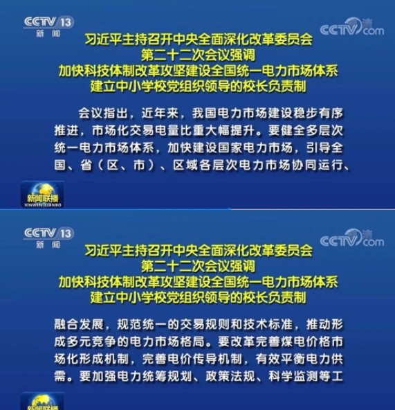 新華社北京11月24日電 中共中央總書記、國家主席、中央軍委主席、中央全面深化改革委員會主任習(xí)近平11月24日下午主持召開中央全面深化改革委員會第二十二次會議,審議通過了《科技體制改革三年攻堅方案(2021-2023年)》、《關(guān)于加快建設(shè)全國統(tǒng)一電力市場體系的指導(dǎo)意見》、《關(guān)于建立中小學(xué)校黨組織領(lǐng)導(dǎo)的校長負(fù)責(zé)制的意見(試行)》、《關(guān)于讓文物活起來、擴(kuò)大中華文化國際影響力的實(shí)施意見》、《關(guān)于支持中關(guān)村國家自主創(chuàng)新示范區(qū)開展高水平科技自立自強(qiáng)先行先試改革的若干措施》。