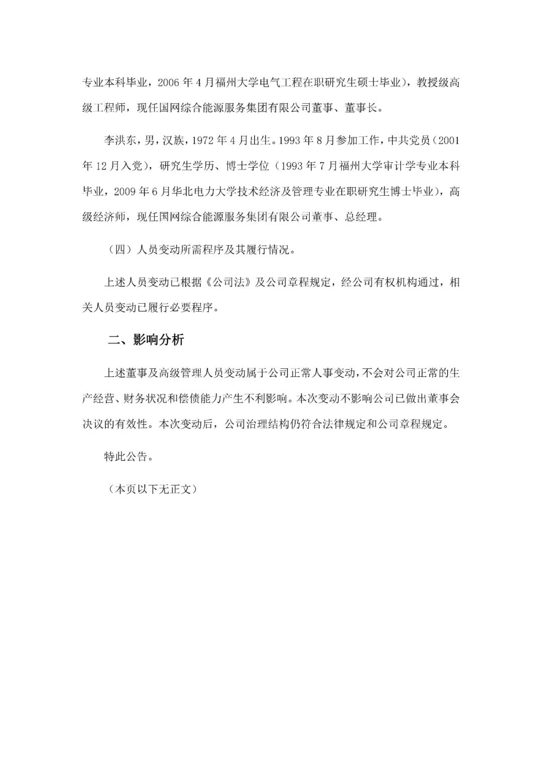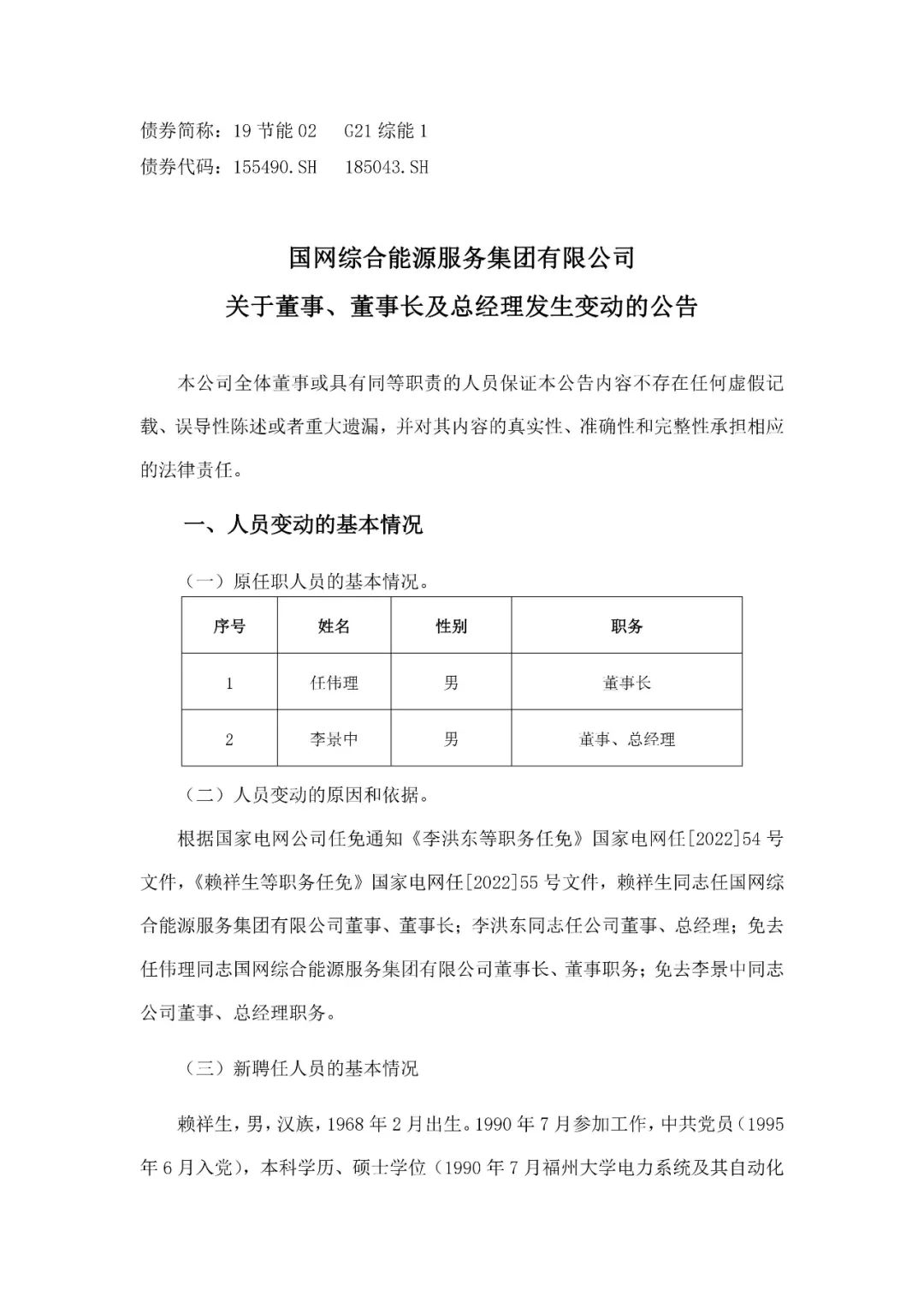 本網(wǎng)訊 4月13日,國網(wǎng)綜合能源服務(wù)集團(tuán)有限公司發(fā)布關(guān)于董事、董事長及總經(jīng)理發(fā)生變動(dòng)的公告。公告顯示,賴祥生同志任國網(wǎng)綜合能源服務(wù)集團(tuán)有限公司董事、董事長;李洪東同志任公司董事、總經(jīng)理;免去任偉理同志國網(wǎng)綜合能源服務(wù)集團(tuán)有限公司董事長、董事職務(wù);免去李景中同志公司董事、總經(jīng)理職務(wù)。