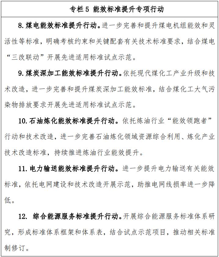 ——修訂一批常規(guī)能源生產(chǎn)轉(zhuǎn)化和輸送利用能效相關(guān)標(biāo)準(zhǔn),提升標(biāo)準(zhǔn)要求和水平,助推和規(guī)范資源綜合利用、能效提升。