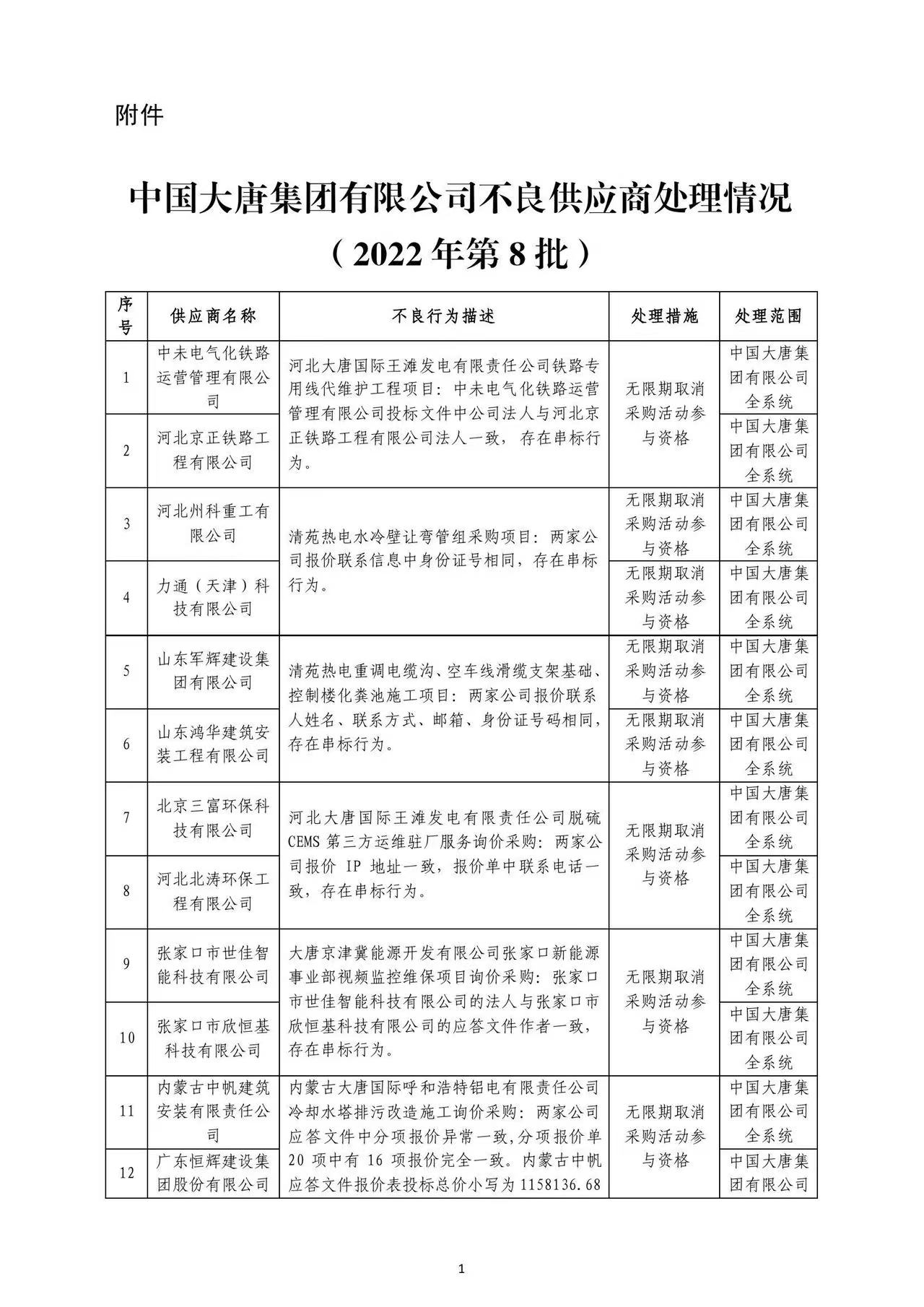 附件: 中國大唐集團(tuán)有限有限公司供應(yīng)商不良行為處理情況(2022年第8批)