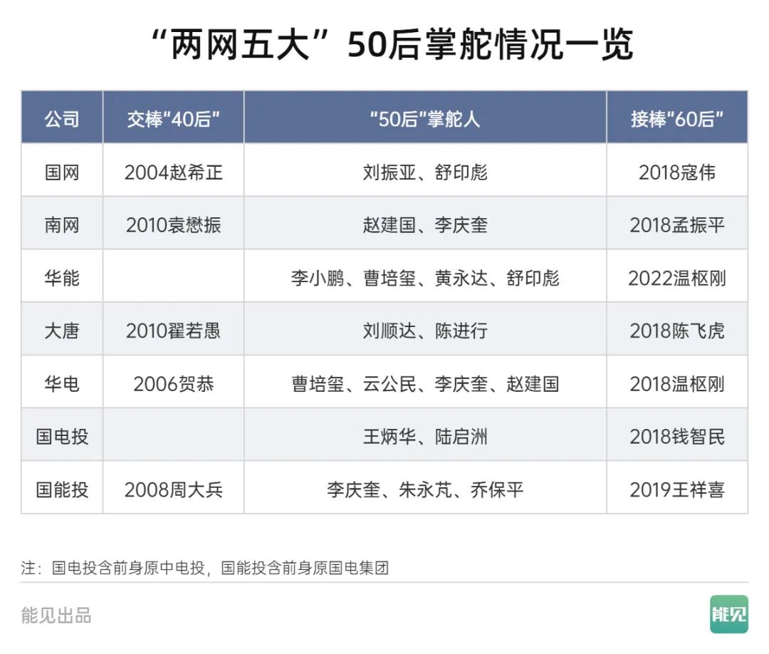 第十二位登場的是1955年1月出生的劉順達。2010年2月,他接棒“40后”翟若愚,出任大唐集團董事長兼黨組書記。至此,中國電力行業(yè)告別最后一位“40后”,正式進入“50后”全面掌舵時代。從2002年12月開始掌舵,到2010年2月全面掌舵,“50后”花了7年零2個月;相比之下,“60后”從2018年1月開始掌舵到2022年9月全面掌舵,僅僅花了4年零8個月。“50后”的早熟及其與“40后”長期并肩作戰(zhàn),保證了中國電力事業(yè)這艘巨輪過去二十年的平穩(wěn)快速航行;而劇變的“雙碳”新時代則催生出“60后”的快速成長和創(chuàng)新思維。