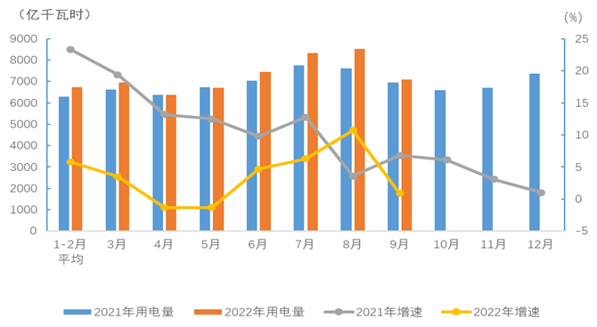 圖4 2021、2022年重點(diǎn)行業(yè)分月用電量情況