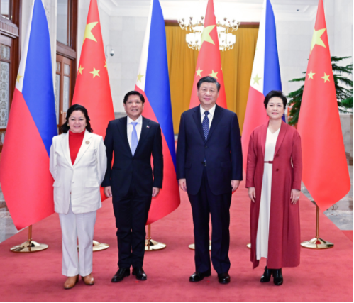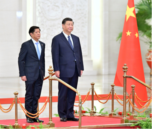習(xí)近平歡迎馬科斯就任菲律賓總統(tǒng)后首次訪華。習(xí)近平指出,這是你首次正式訪問(wèn)東盟以外國(guó)家,你也是今年中方接待的首位外國(guó)領(lǐng)導(dǎo)人。這充分體現(xiàn)了中菲關(guān)系的密切程度,也說(shuō)明雙方在彼此外交格局中占有重要位置。中菲是一衣帶水的近鄰。在兩國(guó)上千年交往史上,以誠(chéng)相待、守望相助始終是中菲關(guān)系主流,也是兩國(guó)人民共有的寶貴精神財(cái)富。48年前,你的父親同中國(guó)老一輩領(lǐng)導(dǎo)人洞察時(shí)局、順應(yīng)大勢(shì),共同作出中菲建交的歷史性決定。此后近半個(gè)世紀(jì),無(wú)論國(guó)際風(fēng)云和菲律賓國(guó)內(nèi)政局如何變化,你和你的家族一本初衷,矢志推動(dòng)中菲友好,這份情誼彌足珍貴。希望你這次訪華不僅是一次“懷舊之旅”,更是一次“開創(chuàng)之旅”。中方始終把菲律賓放在周邊外交優(yōu)先方向,堅(jiān)持從戰(zhàn)略和全局高度看待中菲關(guān)系。我愿同你保持經(jīng)常性戰(zhàn)略溝通,全面規(guī)劃雙邊關(guān)系下步發(fā)展,做互幫互助的好鄰居、相知相近的好親戚、合作共贏的好伙伴,為兩國(guó)人民帶來(lái)更多福祉,為地區(qū)和平穩(wěn)定貢獻(xiàn)更多正能量。
