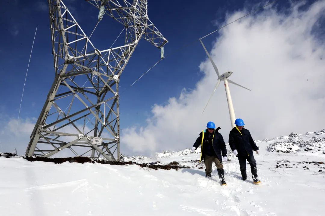 南方電網(wǎng)用“一張表”推進(jìn)各個治理主體履職盡責(zé)。圖為南網(wǎng)貴州六盤水供電局員工在海拔2500多米的六盤水市四格風(fēng)電場巡視檢查風(fēng)力發(fā)電輸出線路。(李泵 攝)