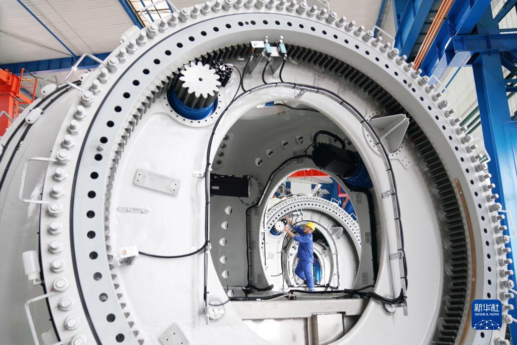 在黑龍江省齊齊哈爾市中國(guó)一重集團(tuán)有限公司風(fēng)電裝備生產(chǎn)制造廠生產(chǎn)車(chē)間,工人進(jìn)行生產(chǎn)作業(yè)(2021年7月1日攝)。