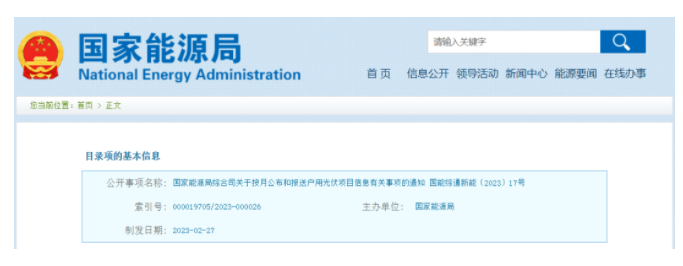 3月9日,國家能源局發(fā)布的《關(guān)于按月公布和報送戶用光伏項目信息有關(guān)事項的通知》。