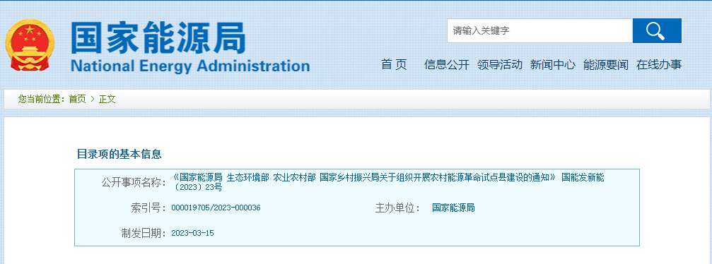 《國家能源局 生態(tài)環(huán)境部 農(nóng)業(yè)農(nóng)村部 國家鄉(xiāng)村振興局關(guān)于組織開展農(nóng)村能源革命試點(diǎn)縣建設(shè)的通知》