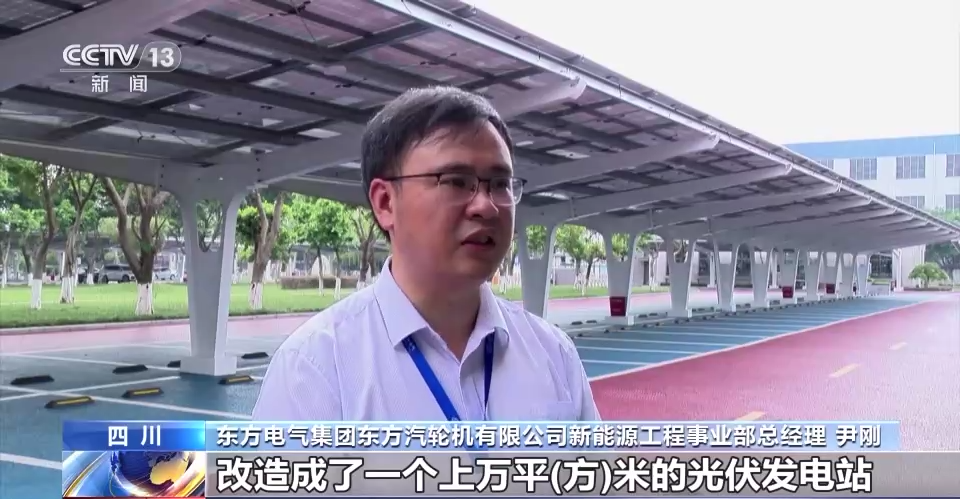 東方電氣集團(tuán)東方汽輪機(jī)有限公司新能源工程事業(yè)部總經(jīng)理 尹剛:我們把公司停車(chē)場(chǎng)改造成了一個(gè)上萬(wàn)平方米的光伏發(fā)電站,現(xiàn)在這個(gè)季節(jié)日發(fā)電量可以達(dá)到7000千瓦時(shí),基本可以滿足辦公區(qū)用電需求。