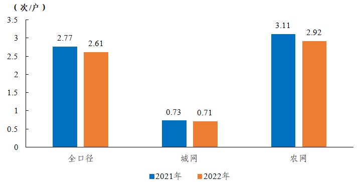 全國(guó)用戶平均停電頻率2.61次/戶,同比減少0.16次/戶,其中,城網(wǎng)0.71次/戶,農(nóng)網(wǎng)2.92次/戶。城網(wǎng)與農(nóng)網(wǎng)相差2.21次/戶。