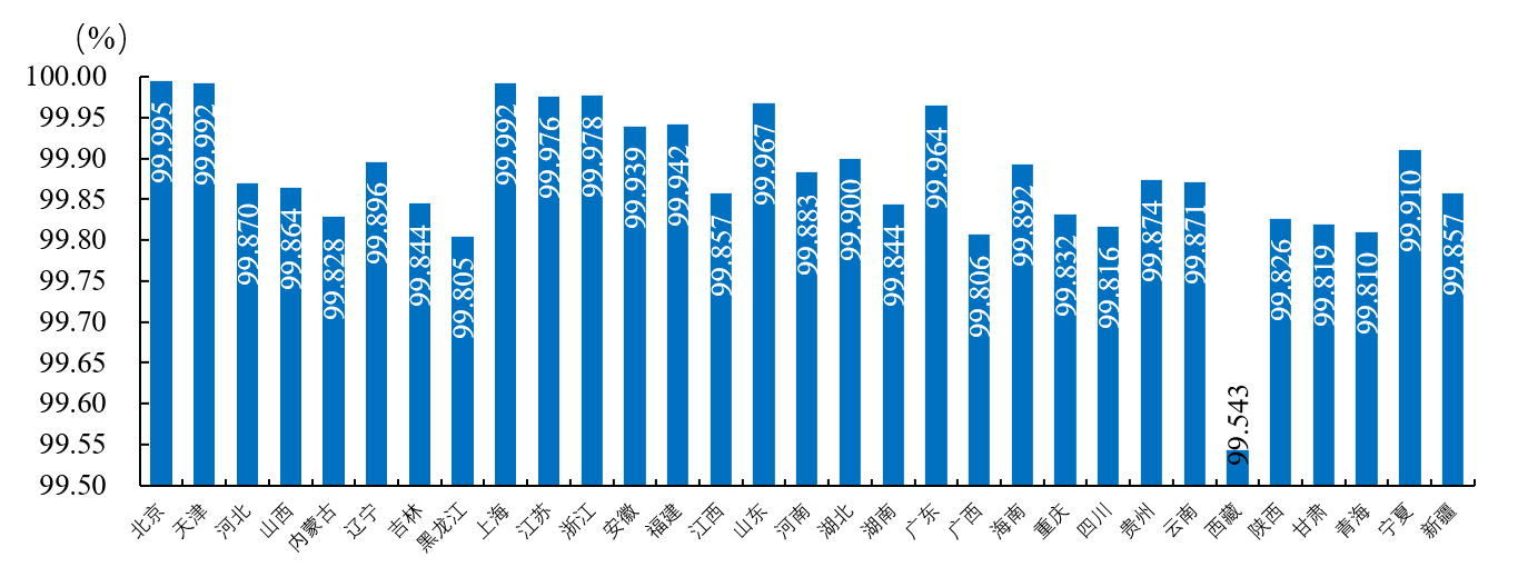 2022年,全國(guó)31個(gè)省級(jí)行政區(qū)中,北京、天津、上海、浙江、江蘇、廣東、山東的用戶平均供電可靠率高于99.95%,西藏的用戶平均供電可靠率低于99.80%。