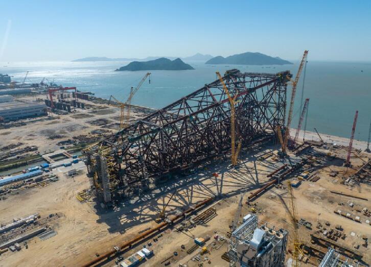 我國自主設(shè)計建造的深水導(dǎo)管架“?;?rdquo;建設(shè)完工。“?;?rdquo;導(dǎo)管架總高338米,總重達3.7萬噸,均刷新亞洲紀(jì)錄,將與“海洋石油122”共同服役于我國首個深水油田流花11-1/4-1油田,標(biāo)志我國海洋深水油氣裝備設(shè)計建造能力實現(xiàn)穩(wěn)步提升。