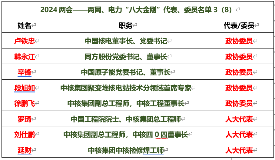 (1)楊長(zhǎng)利 中國(guó)廣核集團(tuán)董事長(zhǎng)、黨委書記(政協(xié)委員)