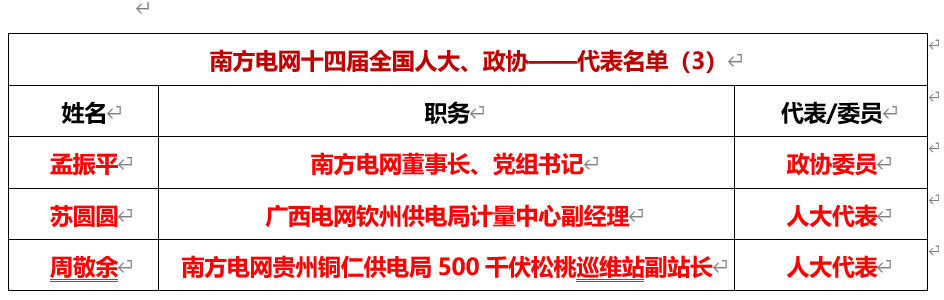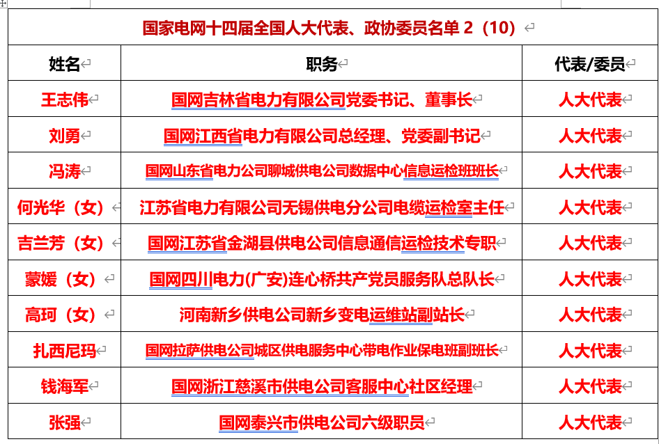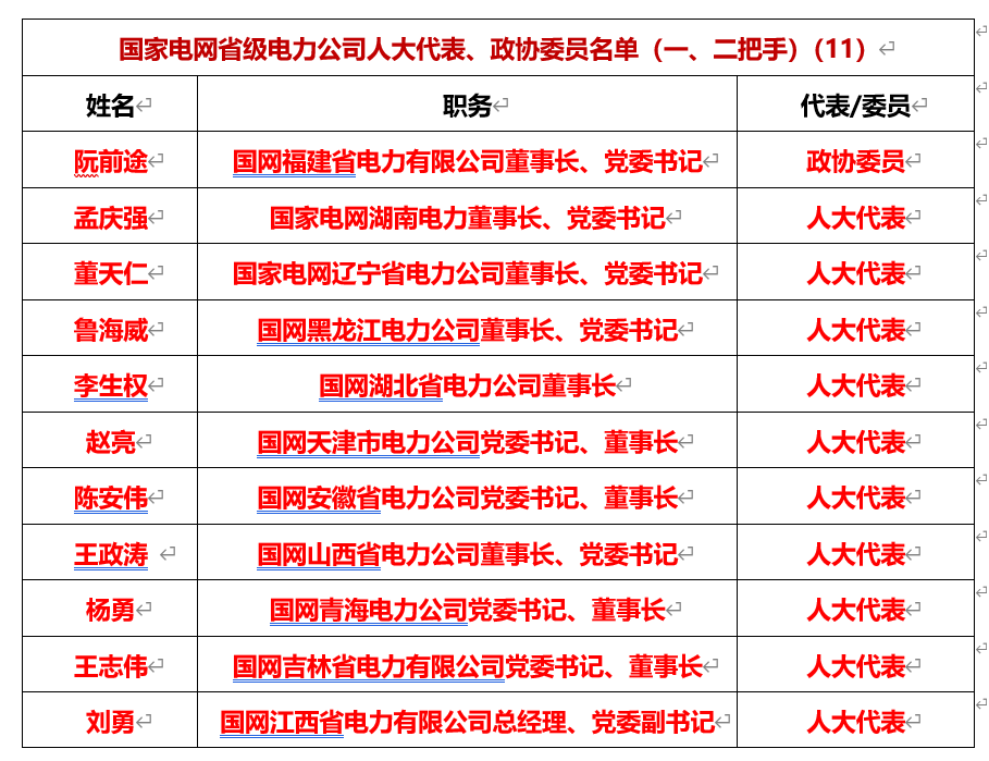 (1)孟振平南方電網(wǎng)董事長(zhǎng)、黨組書記(政協(xié)委員)