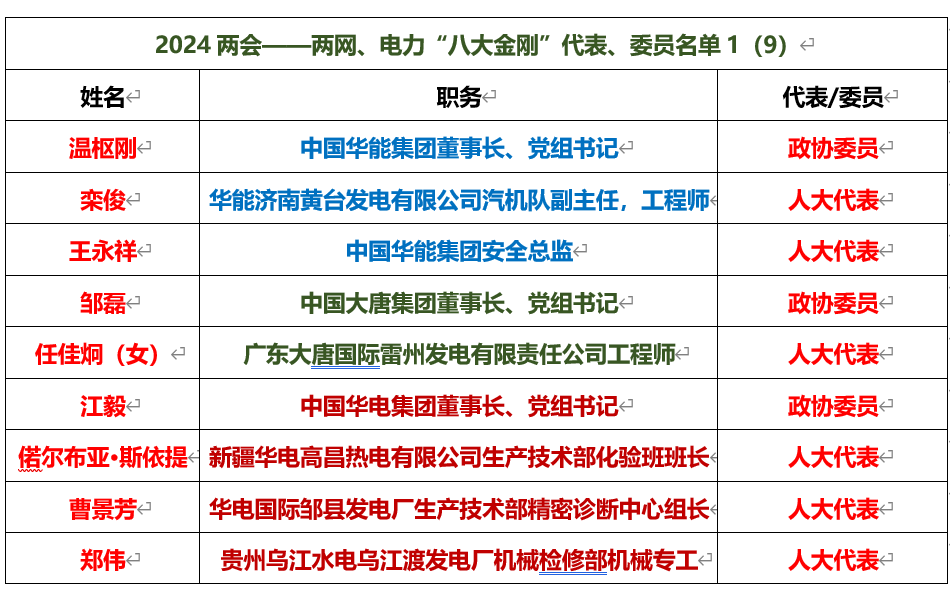 2024年能源、電力領(lǐng)域兩會(huì)代表、委員全名單!