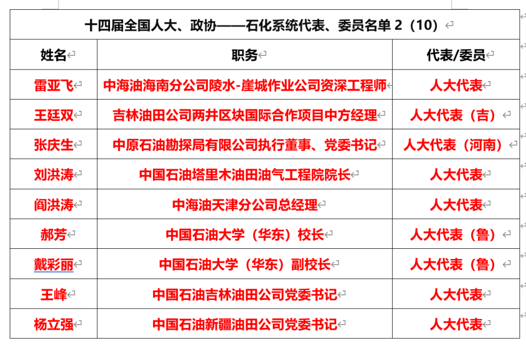(1)汪東進(jìn) 中國(guó)海油董事長(zhǎng)、黨組書記(政協(xié)委員)