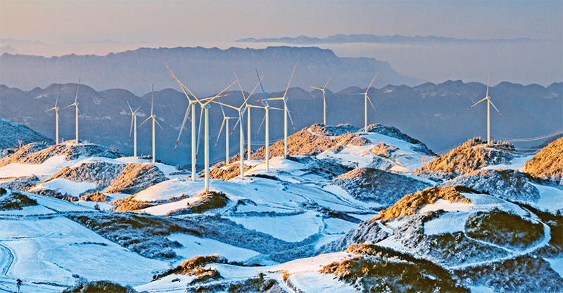 我國持續(xù)推進產(chǎn)業(yè)結構和能源結構調(diào)整,為能源電力綠色低碳轉型奠定了堅實基礎。圖為2024年1月24日拍攝的湖北省宜昌市秭歸縣云臺荒風力發(fā)電場。 人民圖片 雷勇/攝