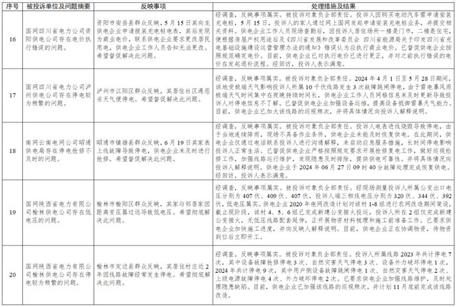 針對(duì)群眾反映的投訴舉報(bào),國(guó)家能源局派出機(jī)構(gòu)嚴(yán)格根據(jù)國(guó)家有關(guān)法規(guī)政策規(guī)定進(jìn)行處理。一是督促供電企業(yè)加強(qiáng)臺(tái)區(qū)等設(shè)備改造力度,縮短供電半徑,提高電網(wǎng)轉(zhuǎn)供、互供能力,解決故障停電、低電壓等電能質(zhì)量問題;二是要求供電企業(yè)加強(qiáng)設(shè)備隱患排查整治、停電搶修管理,加大線路巡視頻次,及時(shí)消除隱患缺陷,增加搶修資源投入,提升設(shè)備管控和停電搶修能力,切實(shí)提高供電質(zhì)量;三是通過行政處罰、監(jiān)管約談、責(zé)令整改等方式,糾正有關(guān)企業(yè)違法違規(guī)行為,維護(hù)公平公正的市場(chǎng)秩序和群眾合法權(quán)益;四是通過解釋說(shuō)明、澄清事實(shí),消除群眾誤解。(2024年7月12398熱線典型投訴舉報(bào)事項(xiàng)具體處理情況,見附件2)