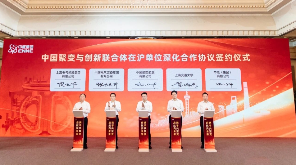 上海市委副書記、市長(zhǎng)龔正出席成立大會(huì),并與中核集團(tuán)黨組書記、董事長(zhǎng)申彥鋒為中國聚變公司揭牌。上海市副市長(zhǎng)劉多,中國石油天然氣集團(tuán)有限公司黨組書記、董事長(zhǎng)戴厚良致辭。